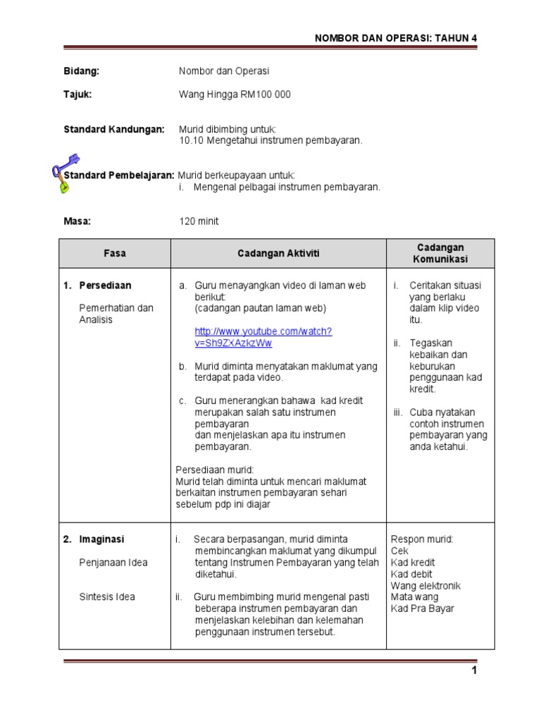 Tahun 4 Matematik Instrumen Pembayaran Sumber Pengajaran